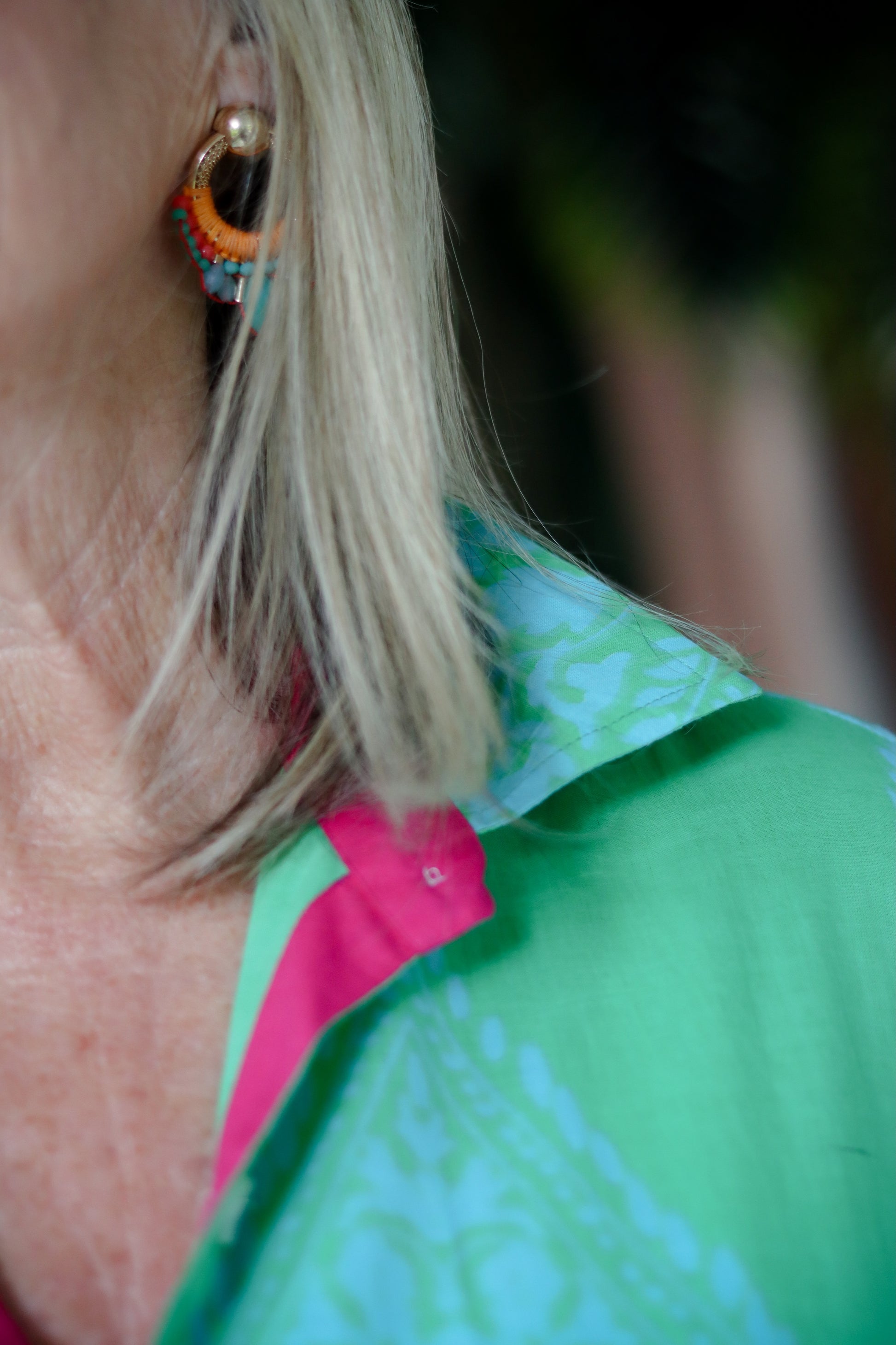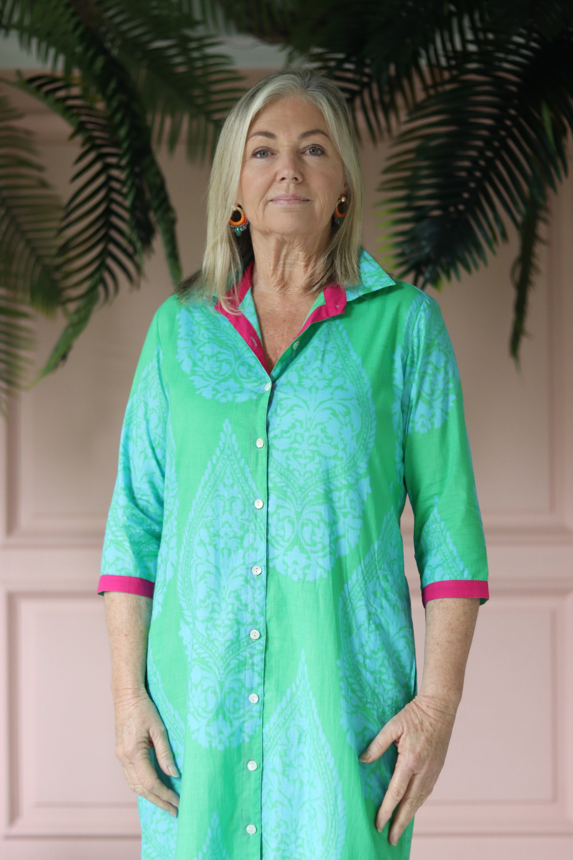 Step into the Alley Shirt Dress Green & Turquoise and enjoy effortless elegance with a pop of colour.