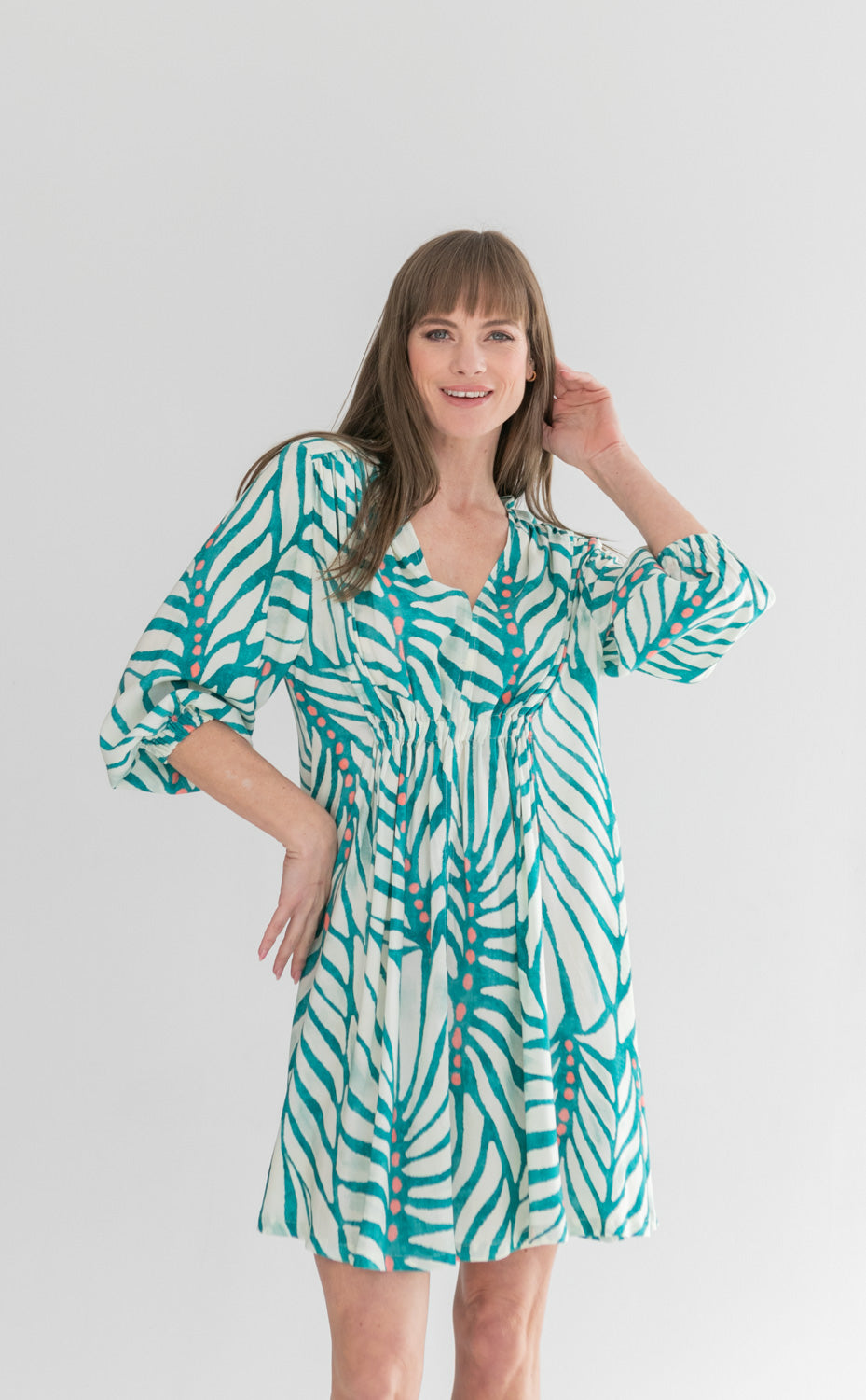 Chic and versatile, the Arniston Short Dress from Kinda is a breezy update to a customer favourite. With its flattering V-neckline and softly elasticated front, it combines elegance with comfort in a shorter silhouette. The above-the-knee length adds a playful touch, while the 3/4 sleeves and relaxed fit make it effortlessly wearable. Style it up with heels or keep it casual with flats or sneakers for everyday ease.