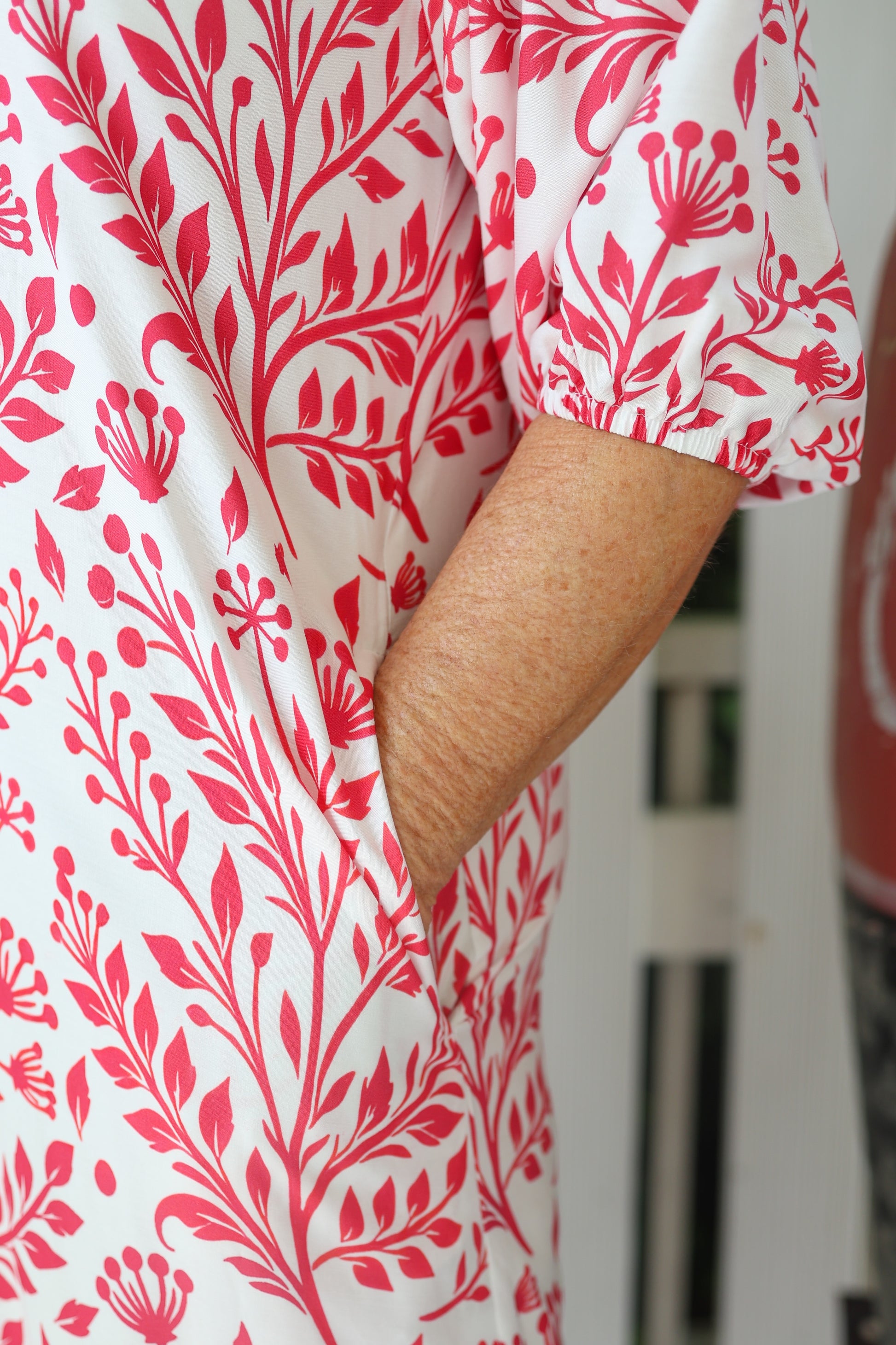 The Bianca Raglan Dress Pink & White from Frock ’n Roll is a soft, feminine favourite designed for effortless everyday elegance. Made from premium viscose luxe, it drapes beautifully with a smooth, lightweight feel that moves gracefully with every step. The pink-and-white print adds a fresh, playful touch, perfect for sunny days or relaxed outings.