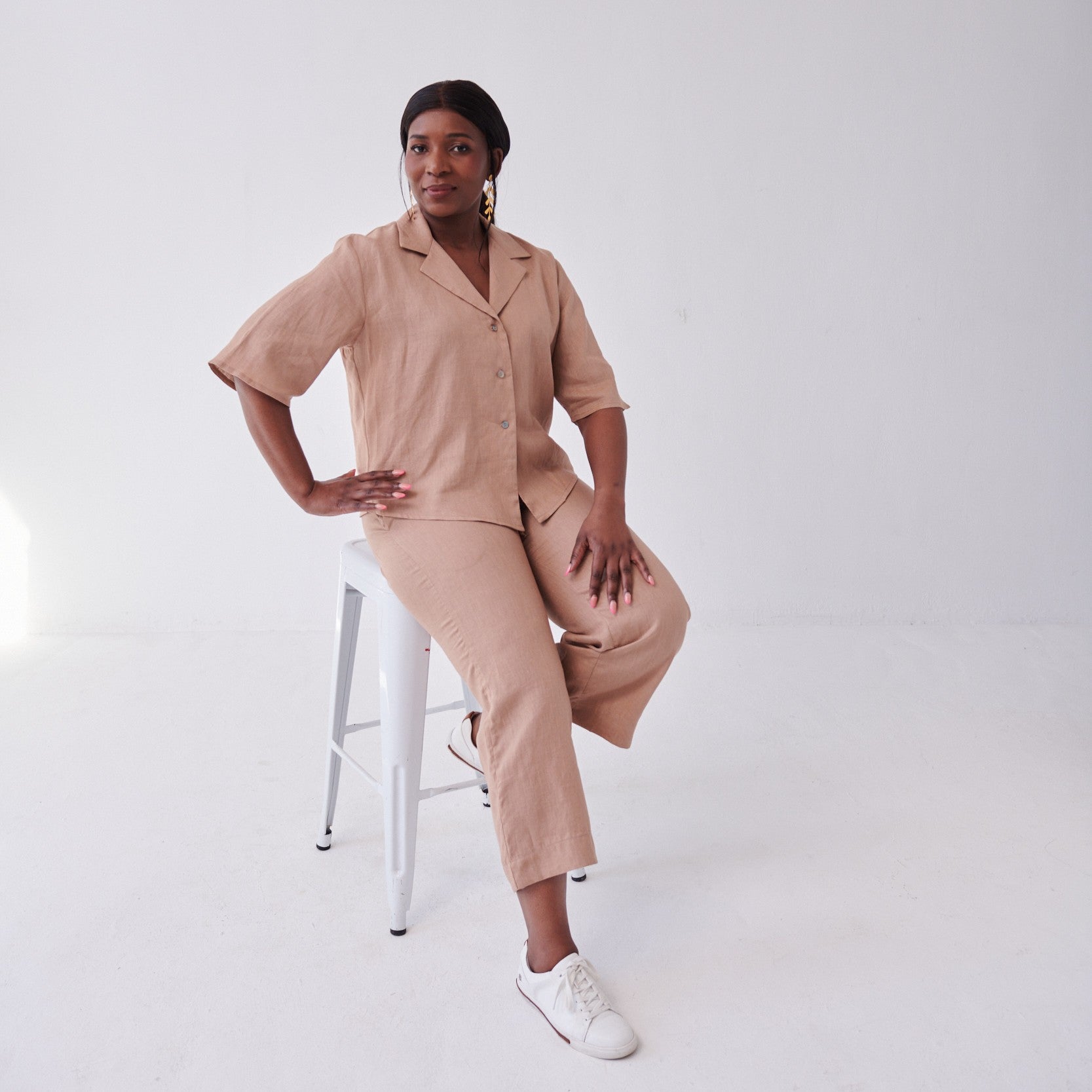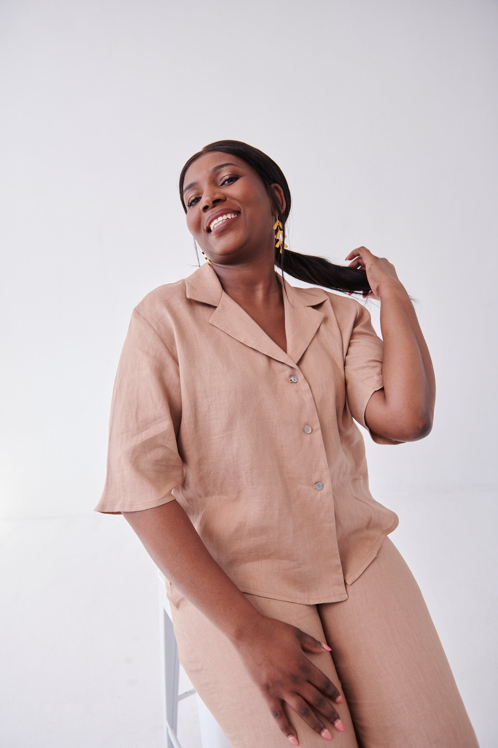 Effortless, modern, and endlessly versatile, the Button Boxy Top is a new season essential designed for easy summer dressing. Crafted from pure linen, this slightly cropped silhouette pairs beautifully with high-waisted styles like the Cropped Riviera Pants, but transitions seamlessly with shorts or skirts for a relaxed yet polished look.