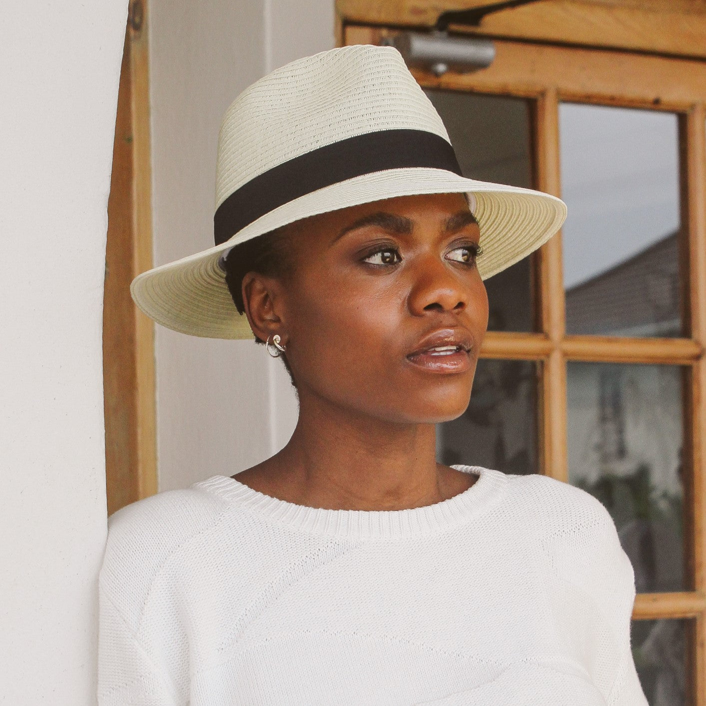 Clarke Fedora Sun Hat Ivory Black