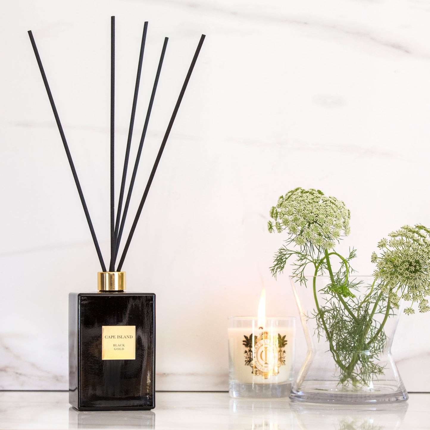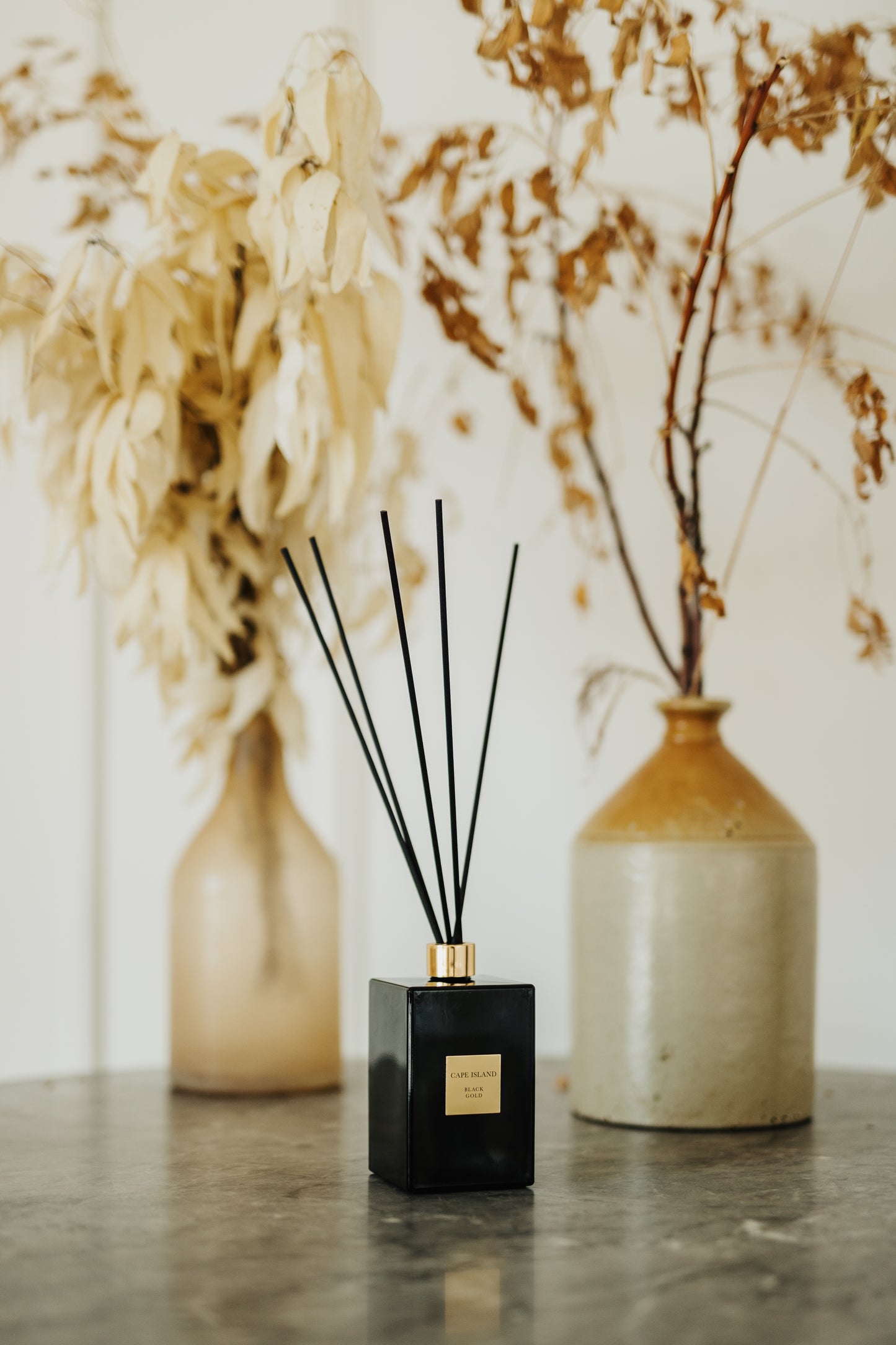 Be bold with this dramatic bamboo reed fragrance diffuser in geometric black glass and honour Africa’s natural wealth through the medium of fragrance.
